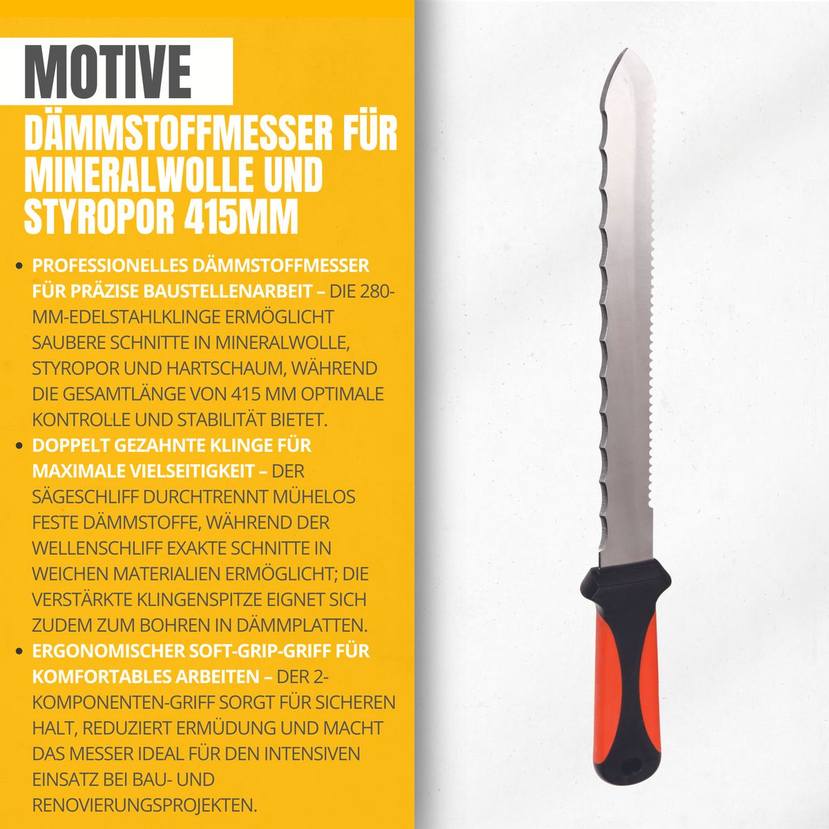 MOTIVE Dämmstoffmesser mit Holster für Mineralwolle und Styropor 415 mm
