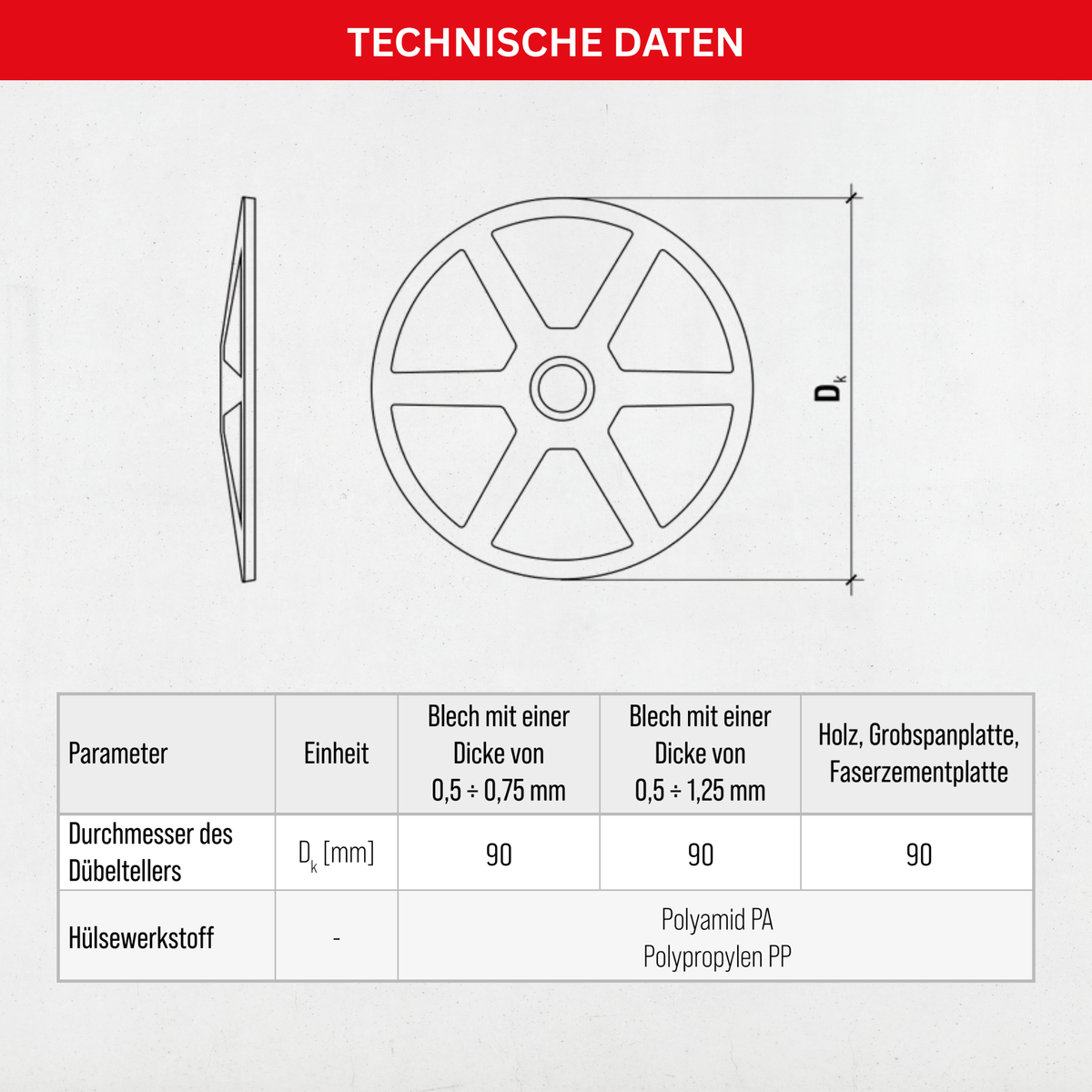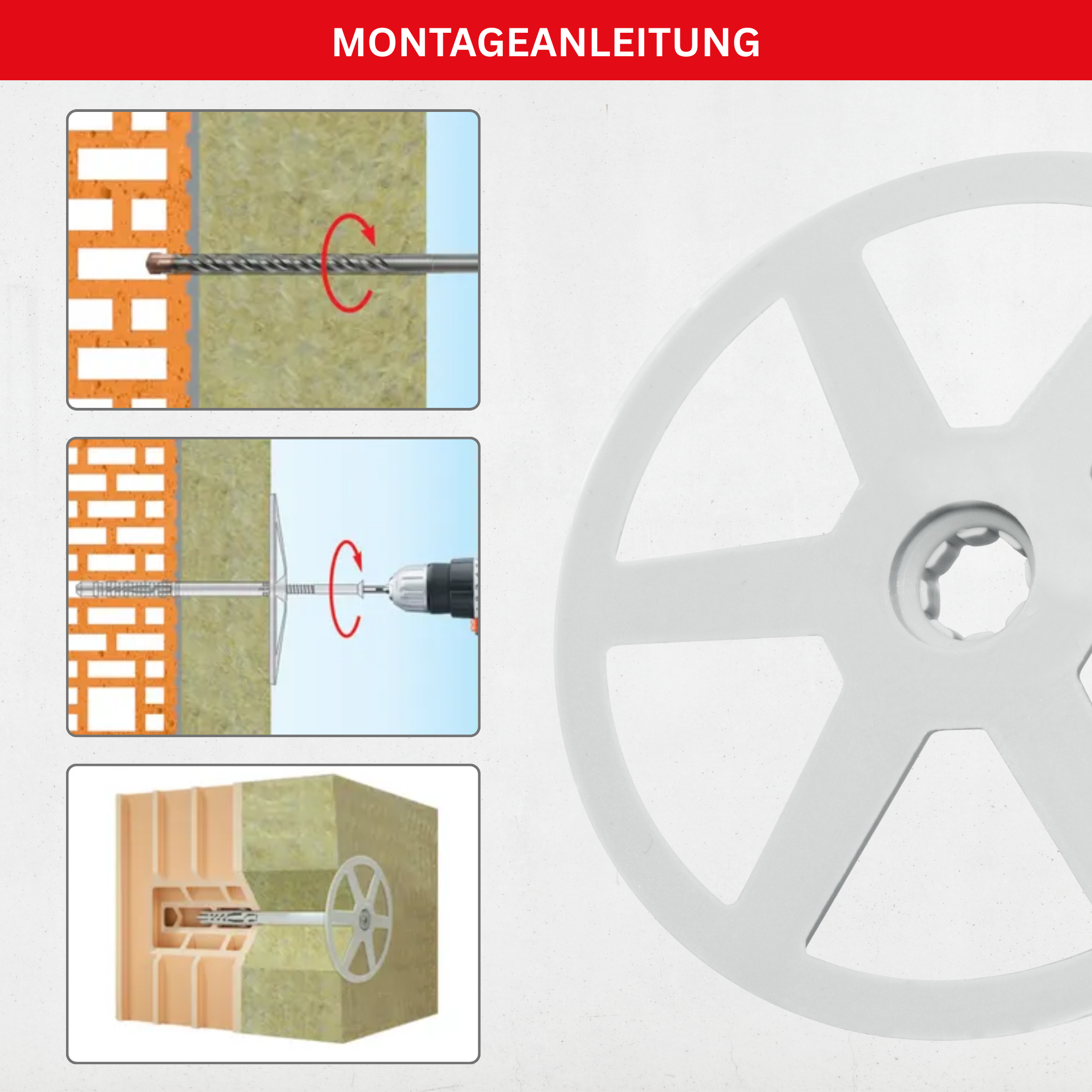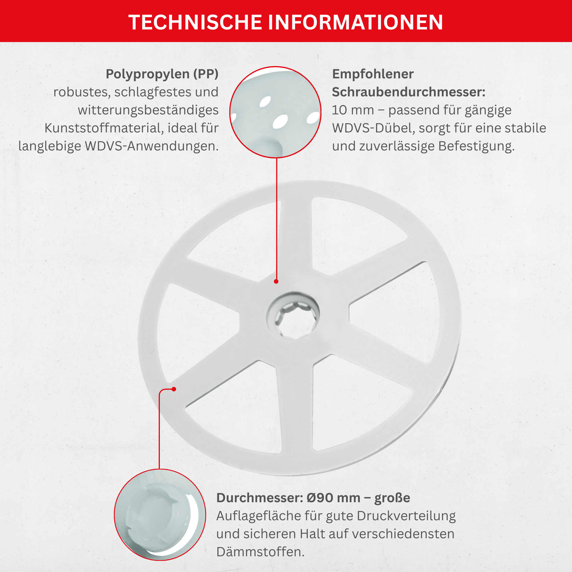 - Anwendung: Für WDVS-Dübelmontage zur Druckverteilung auf Dämmstoffen