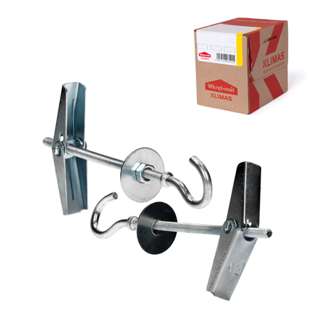 Der Klimas Federklappdübel mit Haken eignet sich ideal für Decken mit Hohlkammern, abgehängte Decken sowie Wände mit leeren Räumen. Perfekt für leichte Befestigungen im Innenbereich.