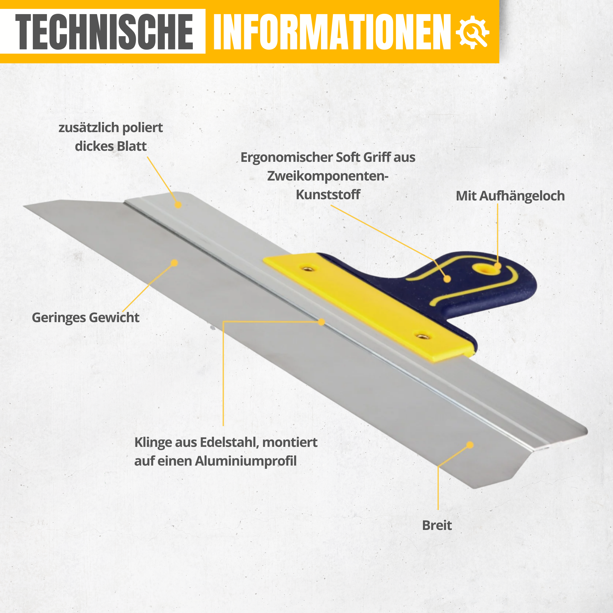 Flächenspachtel 400mm - Fassadenspachtel mit Edelstahlblatt und 2K Softgriff