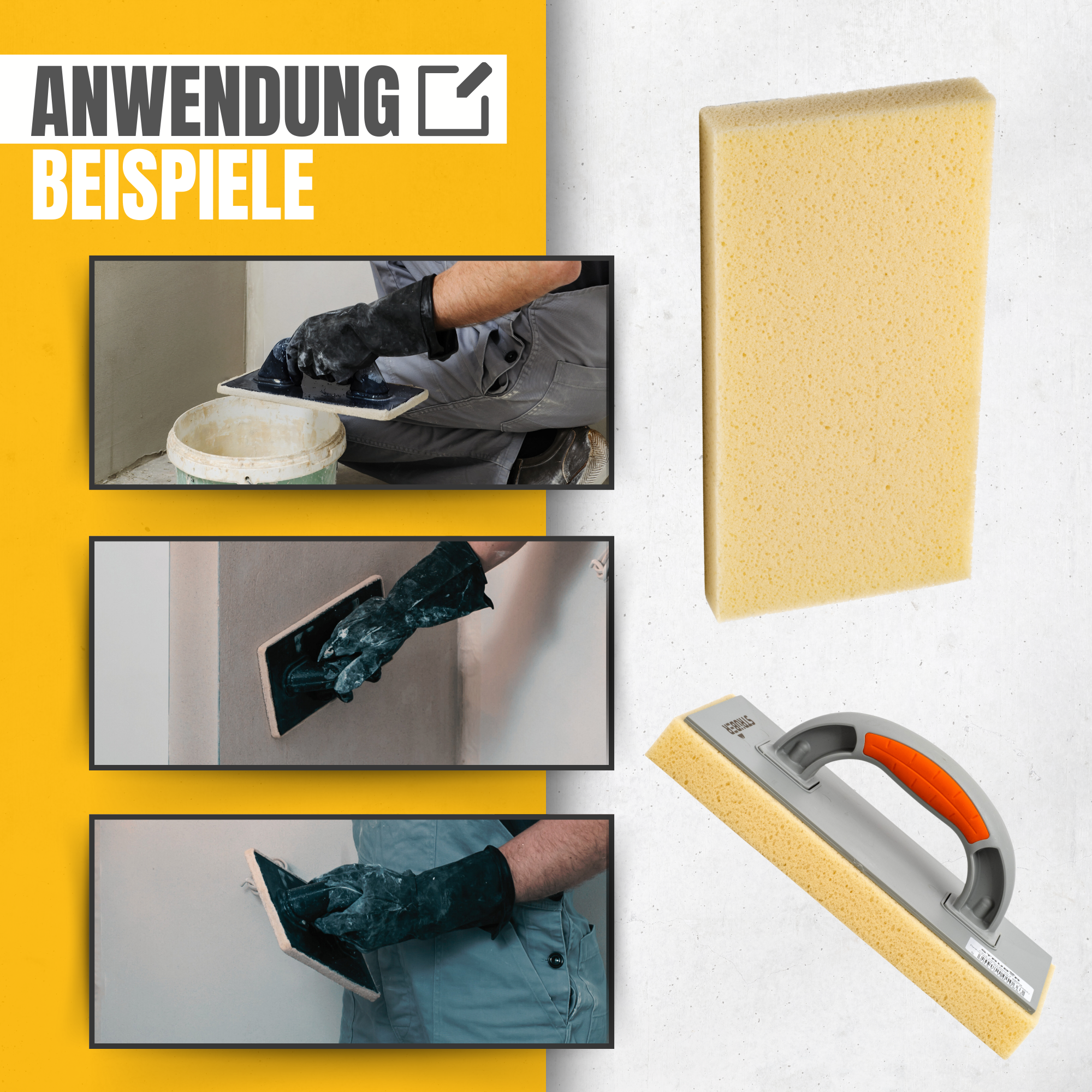 - Einsatzbereich: Fliesenabwaschen, Verfugen, Putzarbeiten