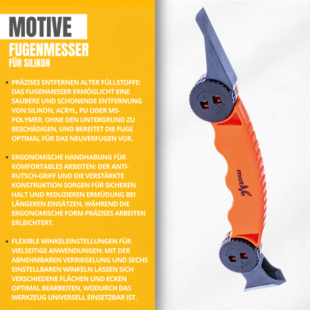 Der Fugenentferner von MOTIVE eignet sich optimal zur Entfernung von alten, defekten oder schimmeligen Füllstoffen wie Acryl, MS-Polymer, PU oder Silikon. Das Werkzeug schützt den Untergrund und ermöglicht eine saubere Vorbereitung vor dem Neuverfugen.