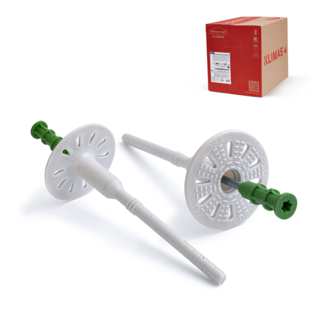 KLIMAS Dämmstoffdübel 8x135mm / 200 Stk. mit Metalldorn – Schraubdübel aus Nylon mit Stahlnagel – Tellerdübel für WDVS - Thermodübel für Mineralwolle und Styropor