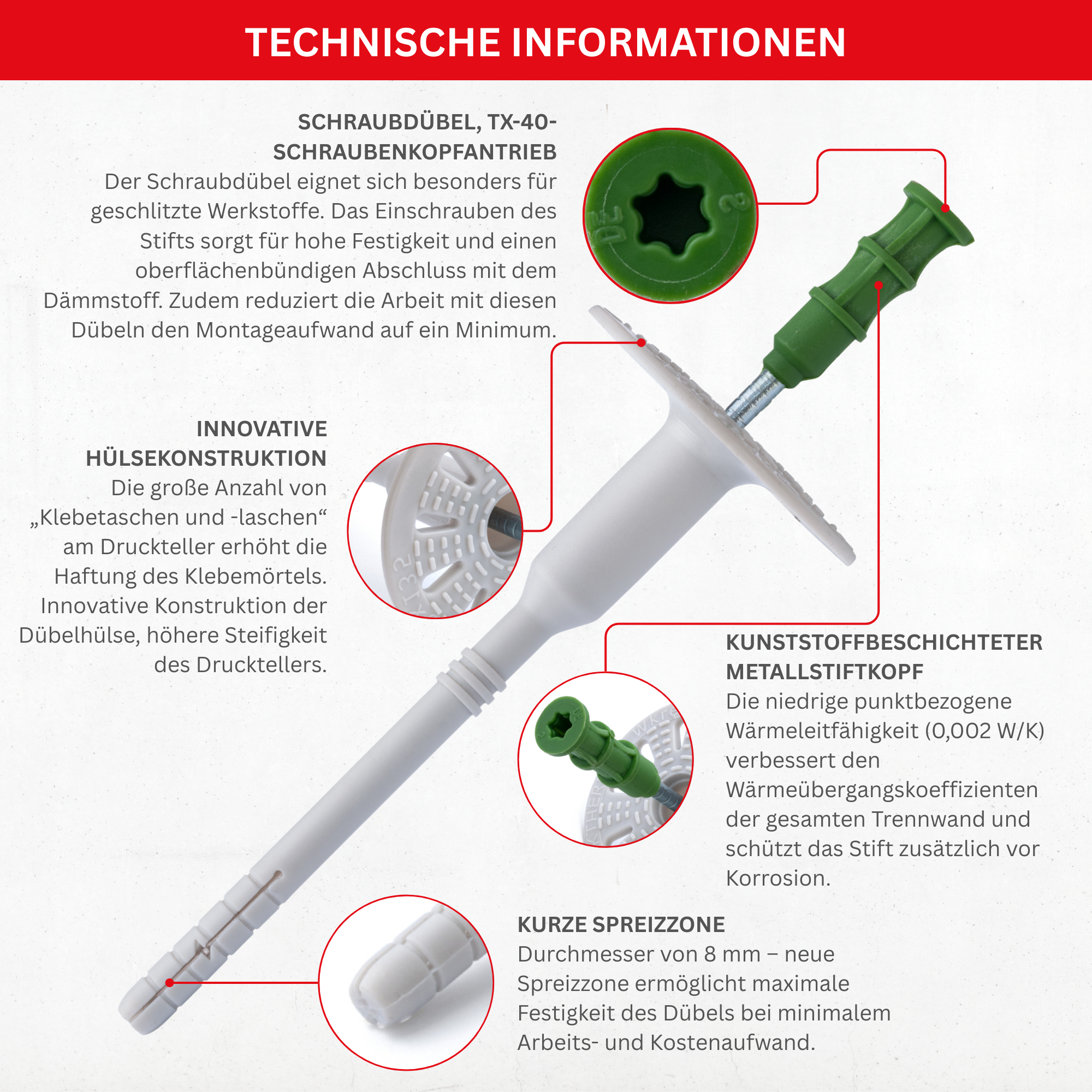 ✔️ Reduziert Wärmebrücken dank Kunststoffkopf