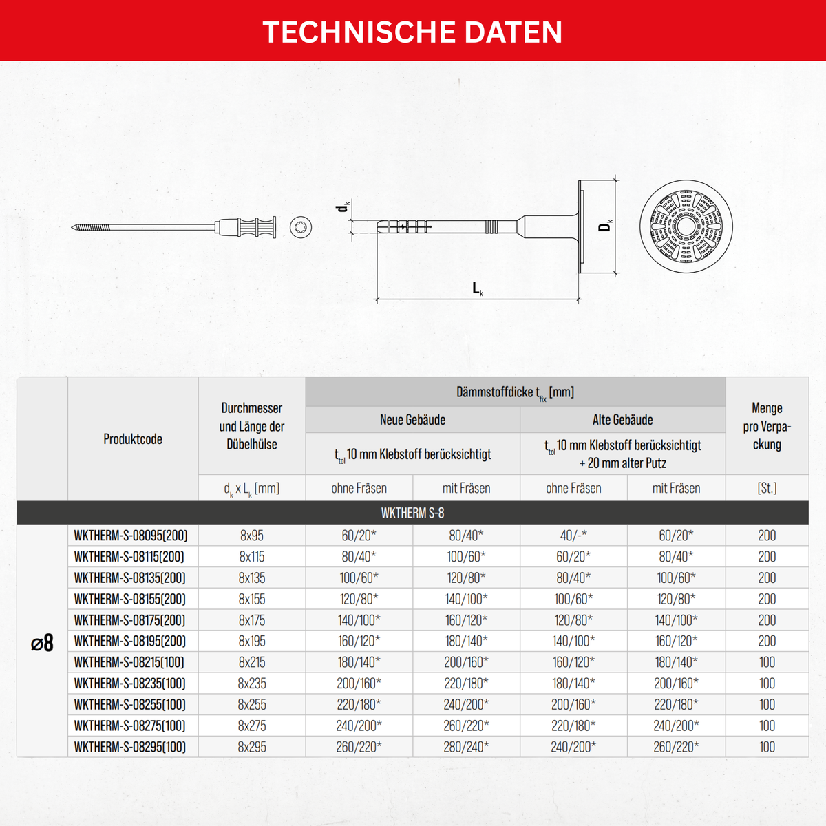 WDVS Dämmstoffdübel Ø8mm WKTHERM-S + Styropor Rondelle + Styropor Fräser