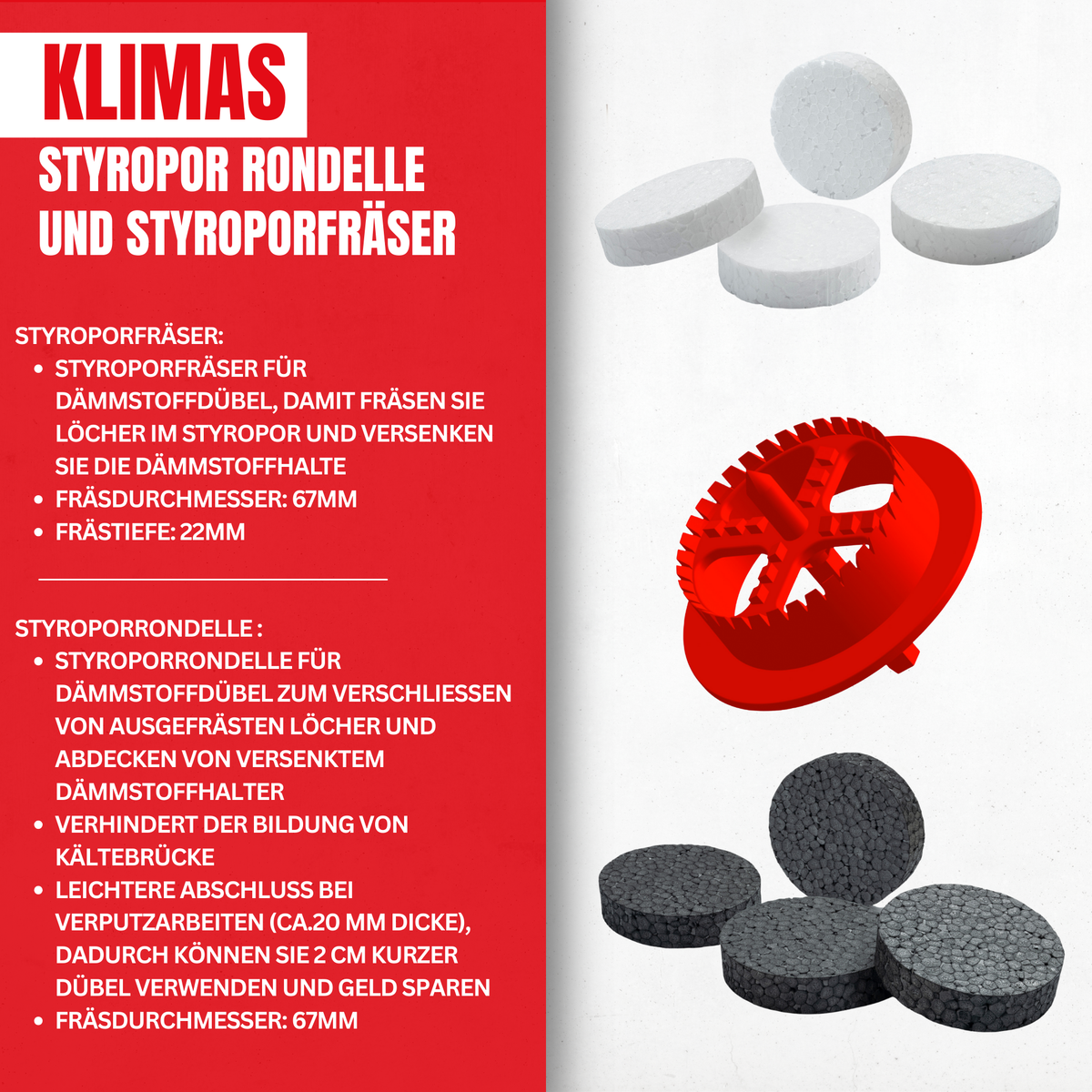 WDVS Dämmstoffdübel Ø8mm WKTHERM-S + Styropor Rondelle + Styropor Fräser