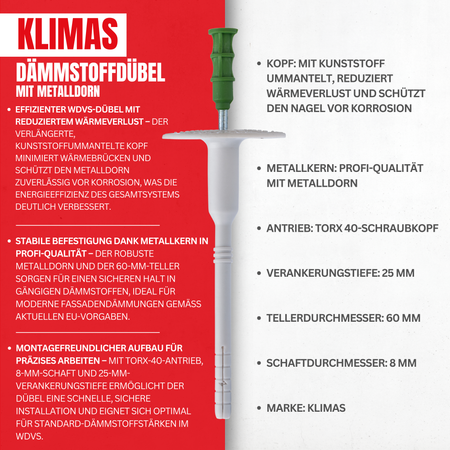 ✔️ Reduziert Wärmebrücken dank Kunststoffkopf
