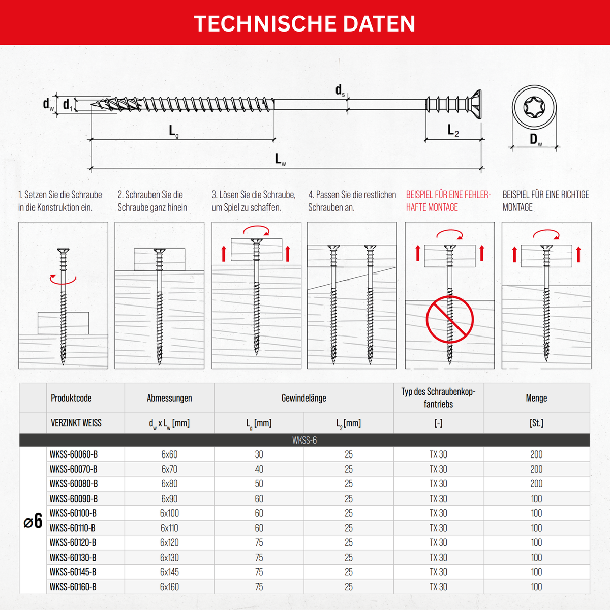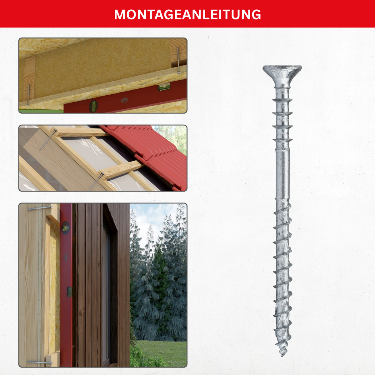 Die Justierschrauben mit Senkkopf und Torx-Antrieb sind speziell für Holzunterkonstruktionen entwickelt. Diese Schrauben – auch bekannt als Distanzschrauben, Abstandsschrauben oder Einstellschrauben – ermöglichen eine stufenlose und variable Abstandseinstellung zwischen Holzbauteilen. Ideal für Decken, Wände oder Dachschrägen, bei denen eine präzise Ausrichtung erforderlich ist. Dank der ETA-Zulassung entsprechen sie höchsten europäischen Qualitätsstandards.