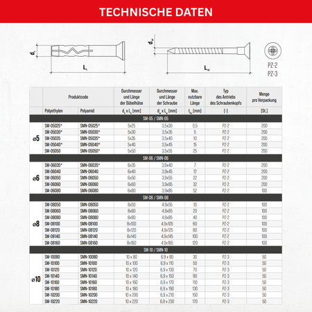Klimas Nageldübel – Schnellmontage Schlagdübel mit Senkkopfschraube