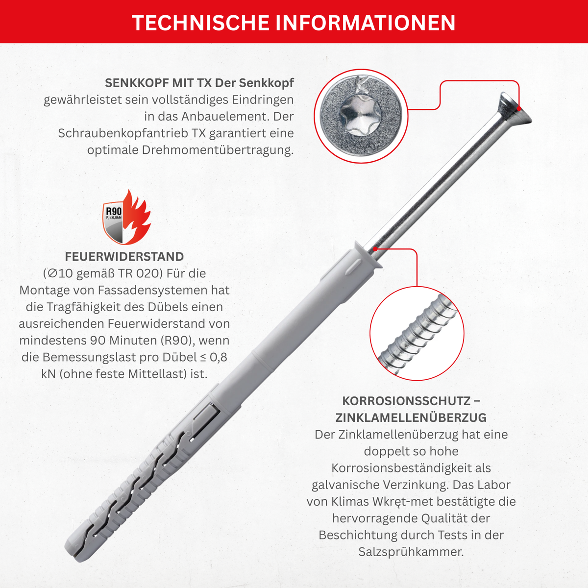 KLIMAS Rahmendübel 10x80 mm / 25 Stk. - Fensterrahmendübel mit Senkkopfschrauben Torx - Langschaftdübel