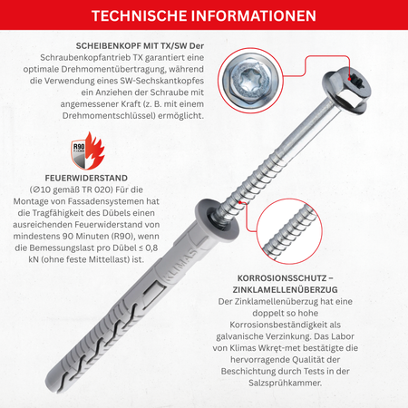 Die Klimas Rahmendübel aus Nylon erfüllen sämtliche Gebrauchssicherheitsnormen und bieten höchste Qualität sowie Korrosionsschutz. Geeignet für Mauerwerke, Beton, Leichtbeton, Porenbeton, Hochlochziegel, Hohlkammerstein und Gasbeton. Ideal zur Befestigung von Holzlatten, Montageschienen an Fassaden, Fensterrahmen und Metallprofilen.