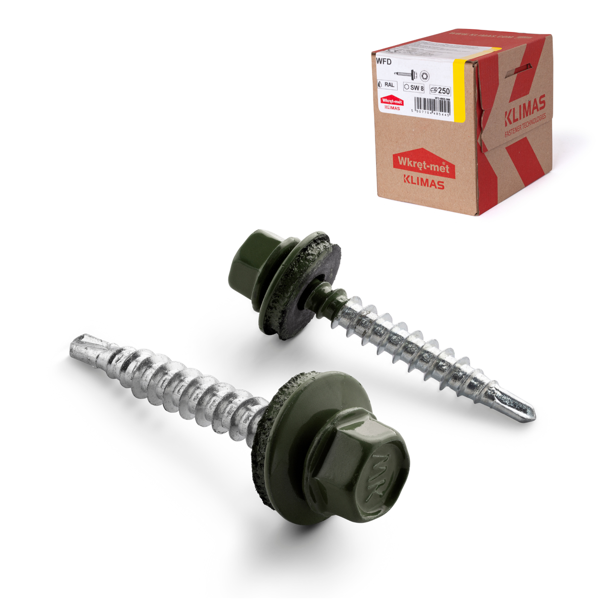 KLIMAS Trapezblechschrauben 4,8x25 mm / 250 Stk. / RAL 6020 - Chromoxidgrün - Selbstbohrende Bohrschrauben mit Dichtscheibe