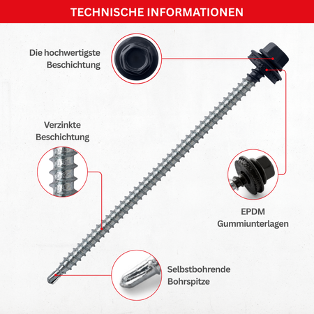 - Unterlegscheibe: EPDM-Gummi + Stahl