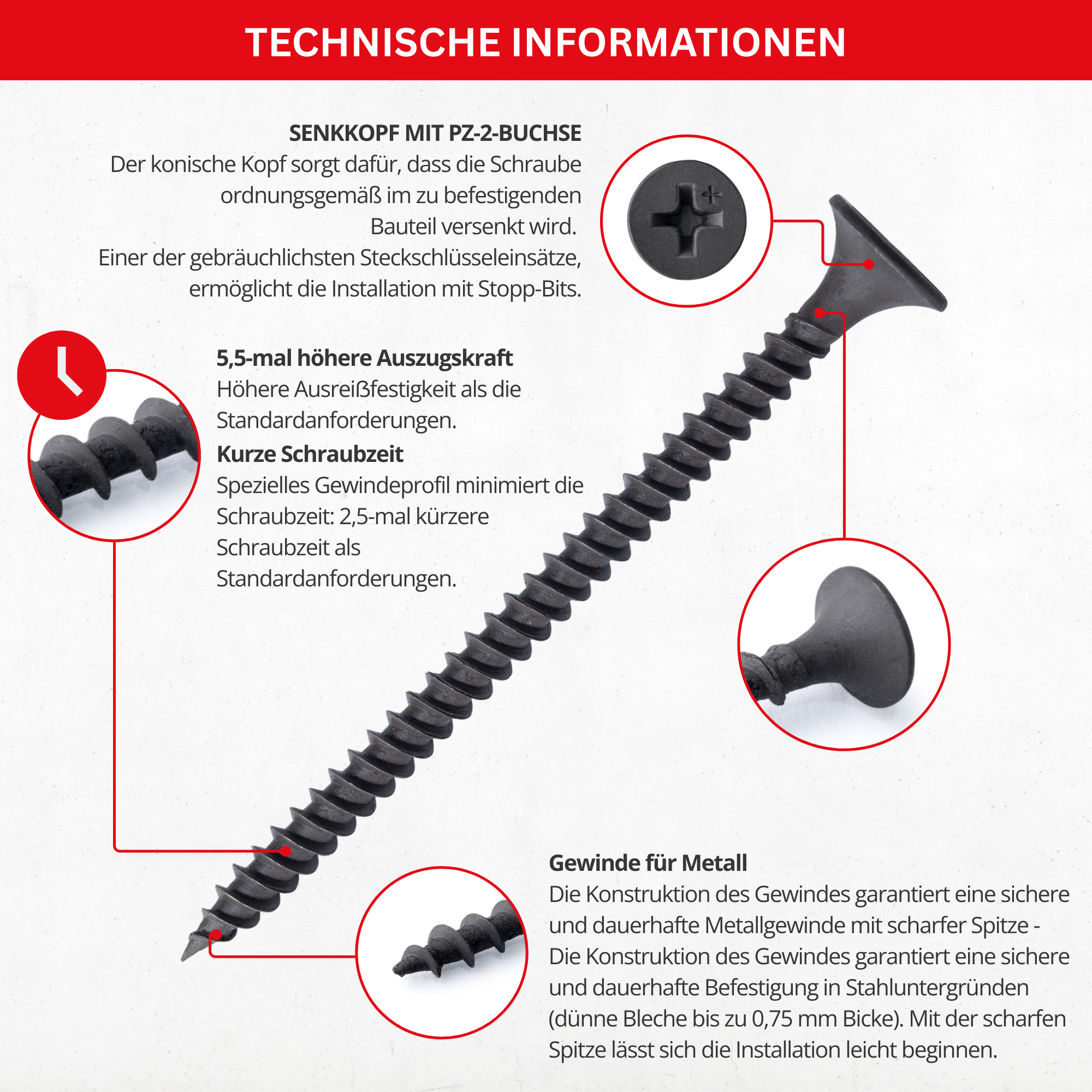- Antrieb: Kreuzschlitz PH-2