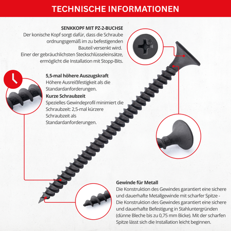 Schnellbauschrauben mit Feingewinde für Metall – PH2-Buchse