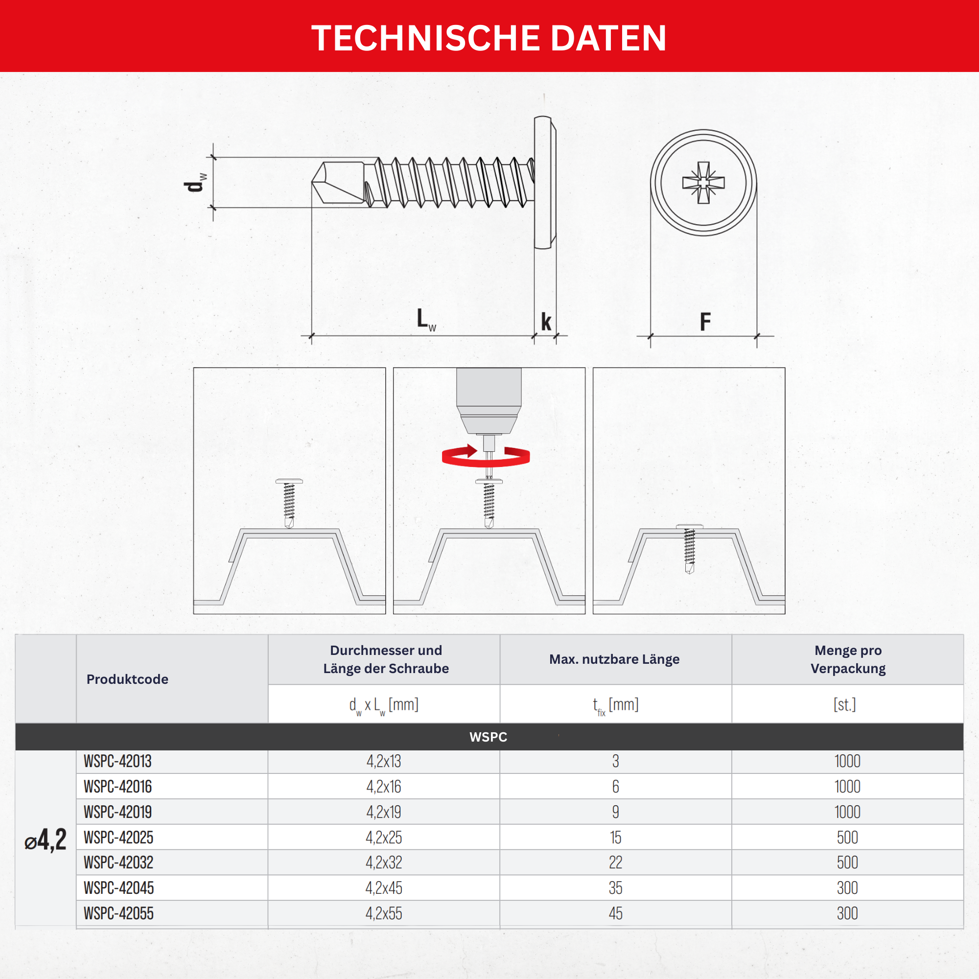 ✔️ Schnelle, präzise Montage durch selbstbohrende Spitze