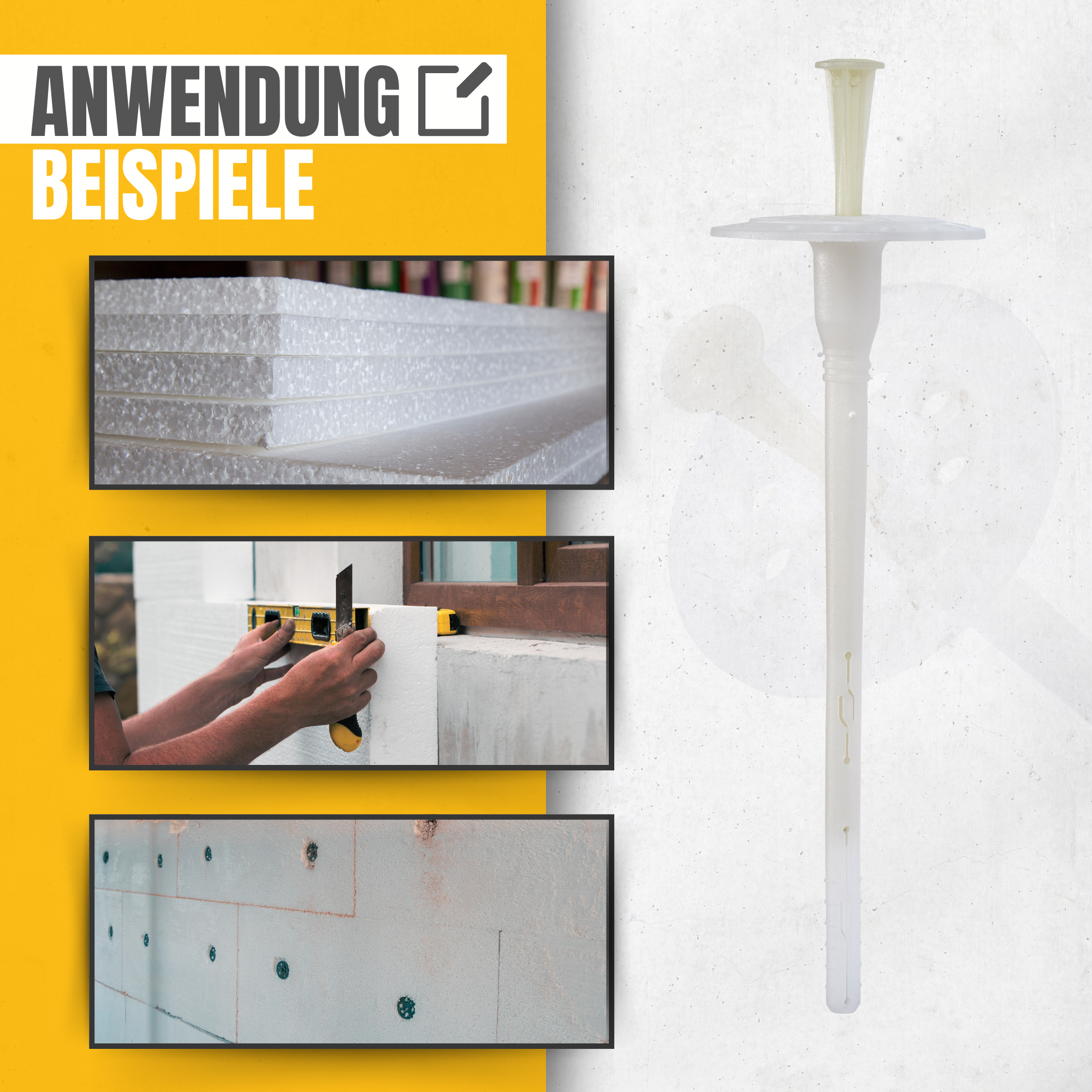 Der STRÜBER WDVS Dämmstoffdübel eignet sich perfekt für Beton, Voll- und Lochziegel, Naturstein, Leichtbeton und Porenbeton. Die Schlagmontage ermöglicht eine schnelle Verarbeitung, während die spezielle Dornkopfkonstruktion die Montage erleichtert und Wärmebrücken minimiert.