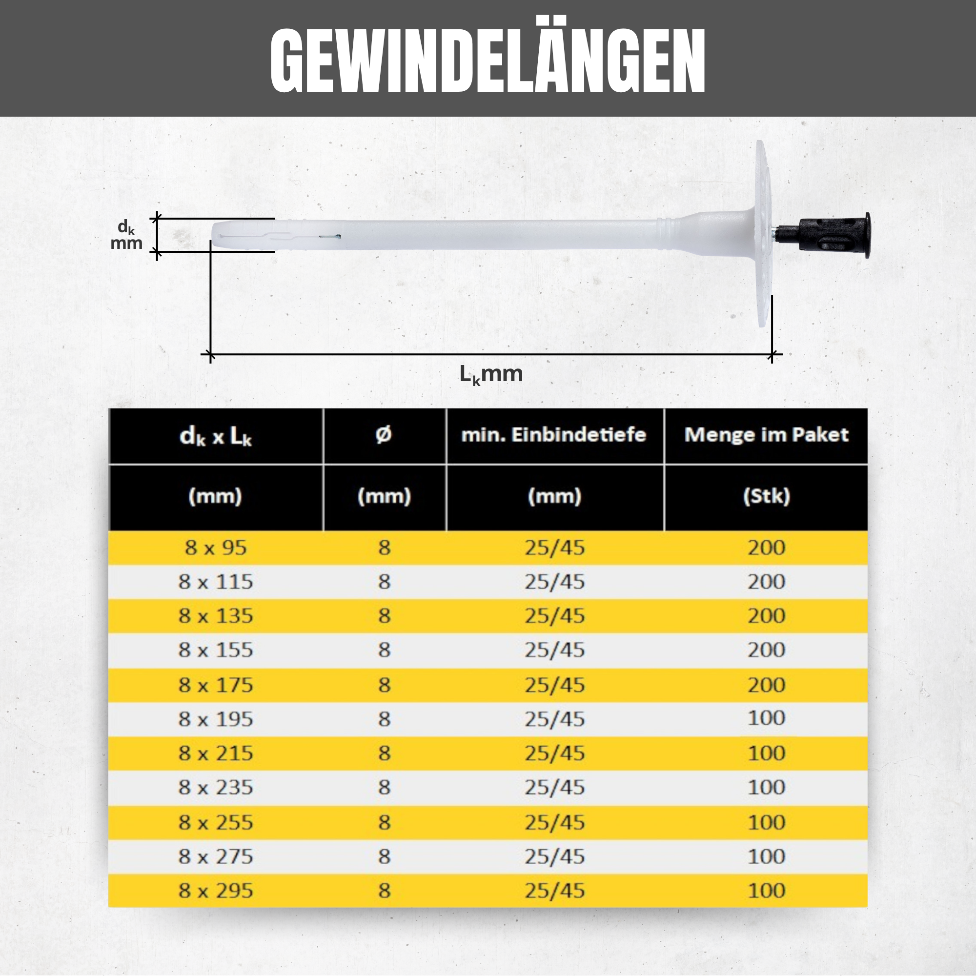 Dämmstoffdübel Ø8 / Ø10 mm – Technische Daten