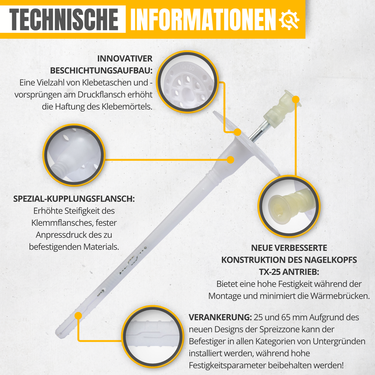 - Typ: Tellerdübel mit Stahlnagel (TX-Antrieb)
