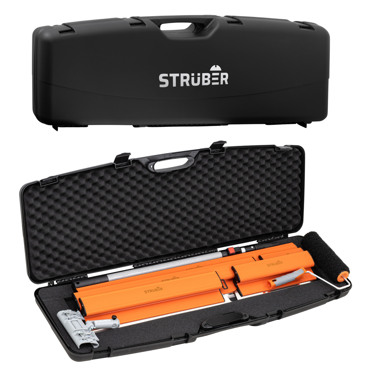 STRÜBER Flächenspachtel Set - 5 x Spachtel mit Ergonomischer Z-Griff (250mm, 400mm, 600mm, 800mm, 1000mm) + Teleskopstange + Adapter + Rollspachtel + Werkzeugkoffer / 9-tlg. SET