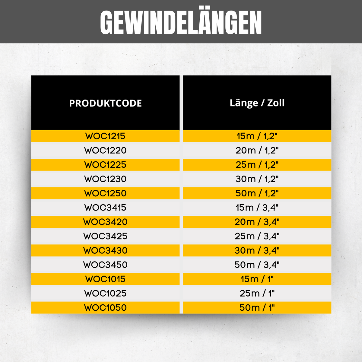 - Längen: 15 m – 50 m