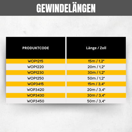 - Längen: 15 m / 20 m / 30 m / 50 m
