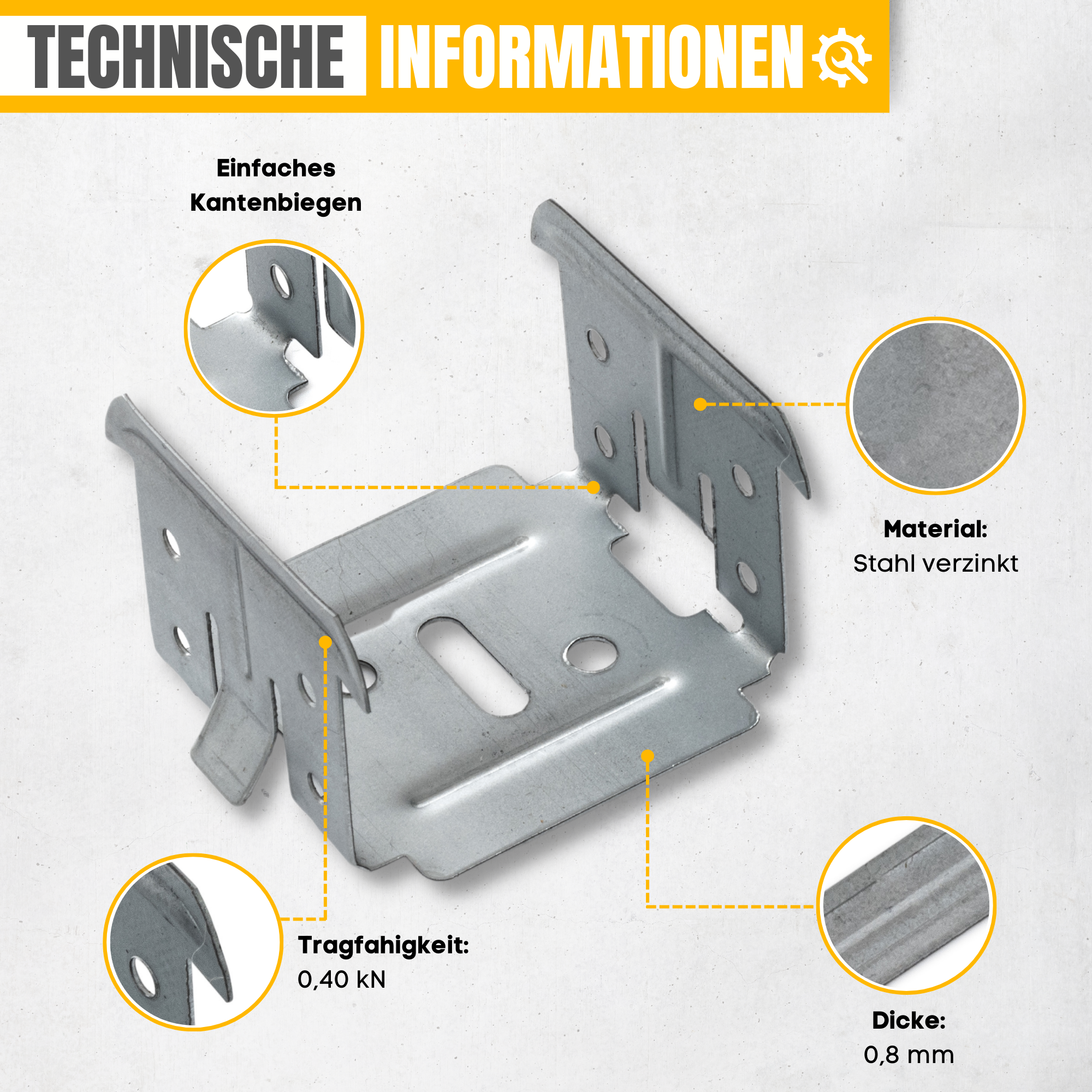 - Anwendungsbereich: Kreuzverbindung von CD-60/27-Profilen in abgehängten Decken