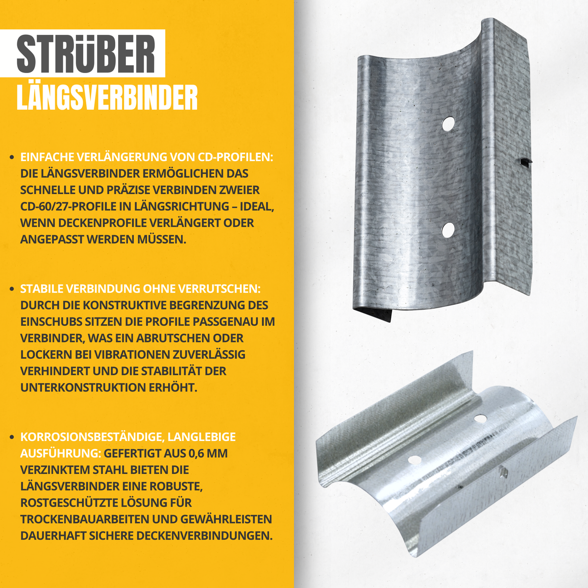 STRÜBER Längsverbinder für Deckenprofile CD 60/27 (100 Stück)