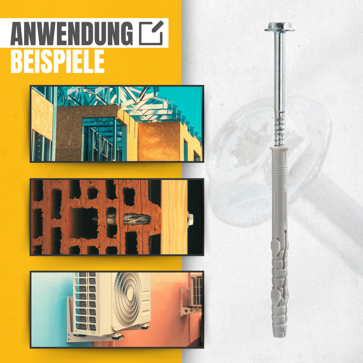 STRÜBER Rahmendübel 8x80 mm / 100 Stk. - Fensterrahmendübel mit Sechskantschraube & Scheibenkopf mit SW/TX-Buchse – Langschaftdübel