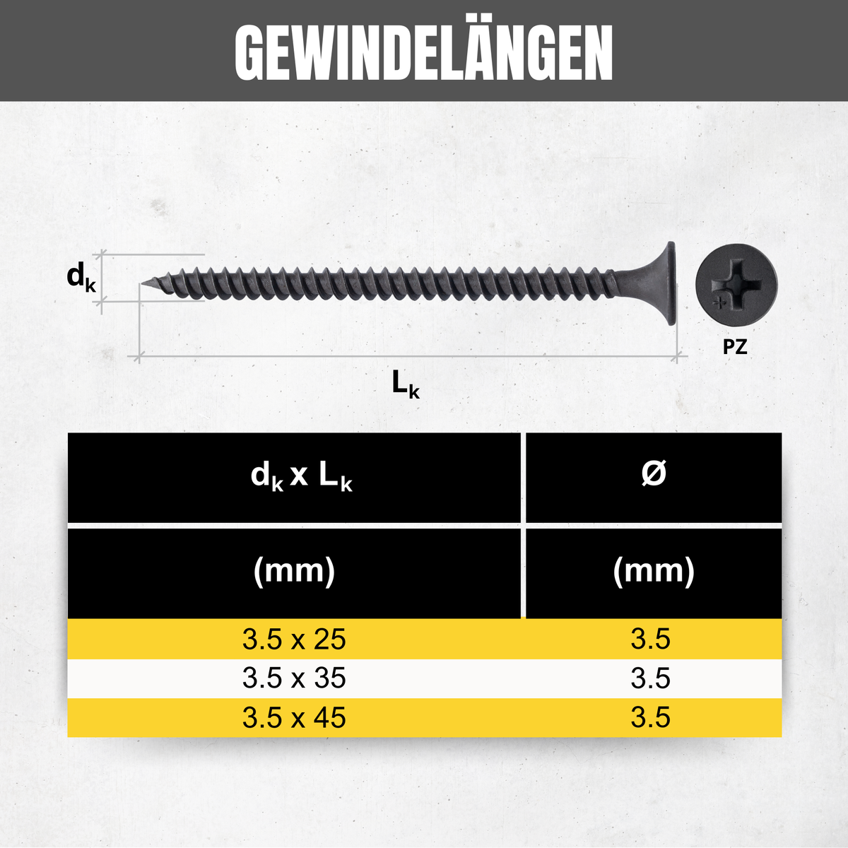 STRÜBER Schnellbauschrauben 3,5 x 45 mm / 500 Stk. Feingewinde - mit Senkkopf und PH2-Antrieb - Trockenbauschrauben - Gipskartonschrauben