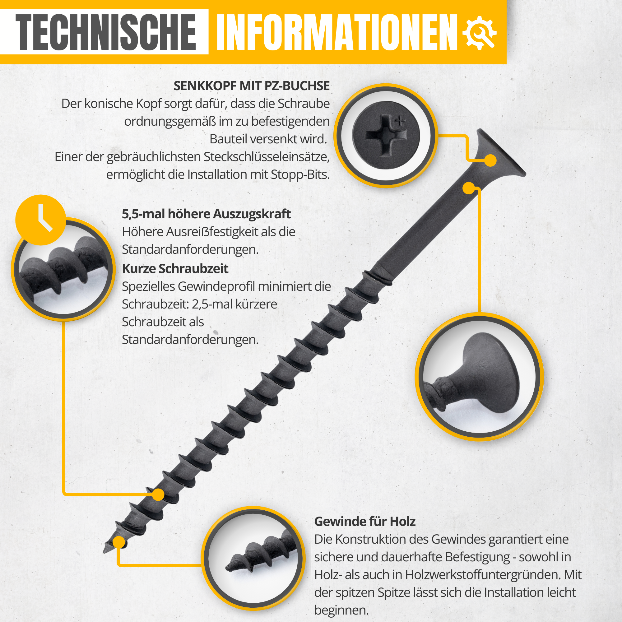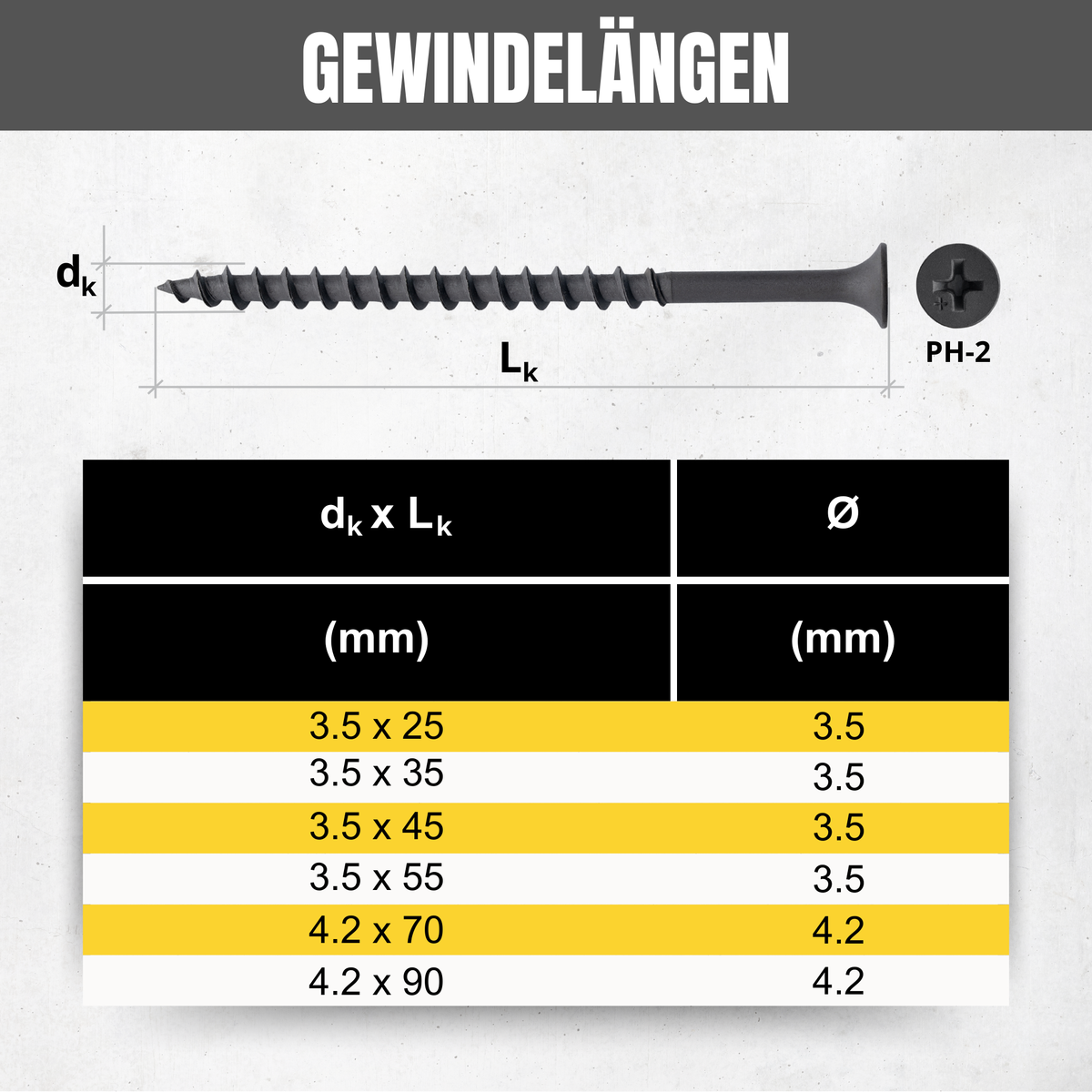 STRÜBER Schnellbauschrauben 3,5 x 55 mm / 500 Stk. Grobgewinde - mit Senkkopf und PH2-Antrieb - Trockenbauschrauben – Gipskartonschrauben