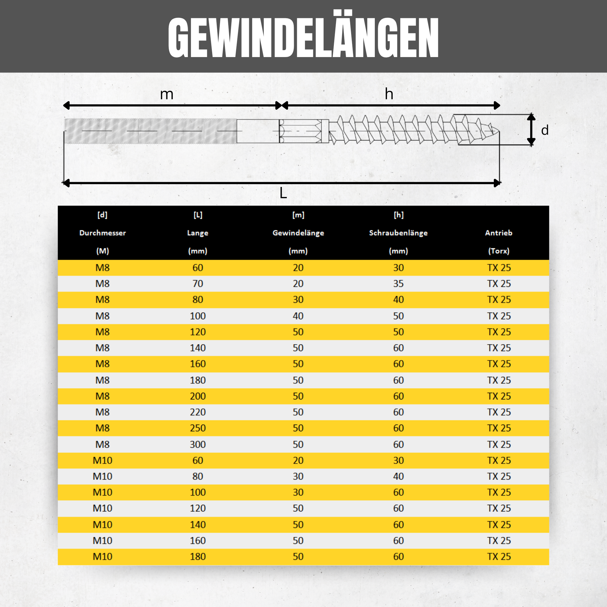 - Längen: 60 mm – 300 mm