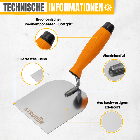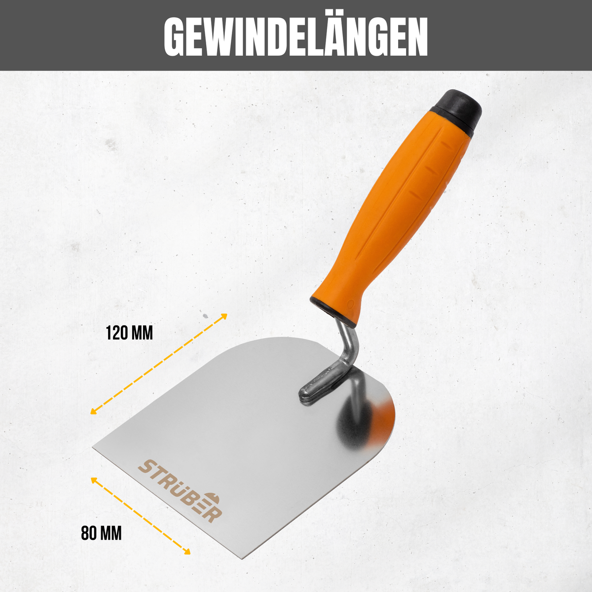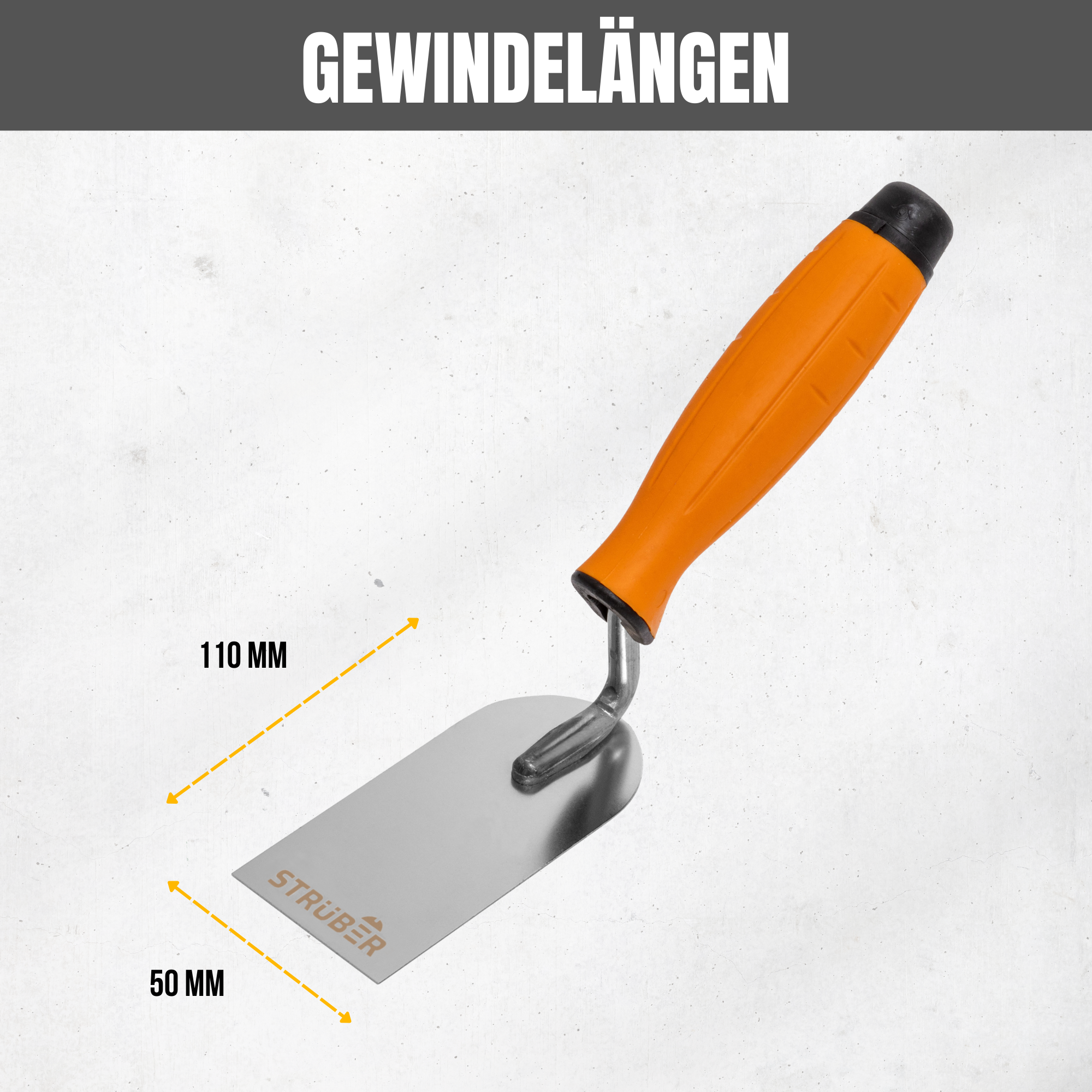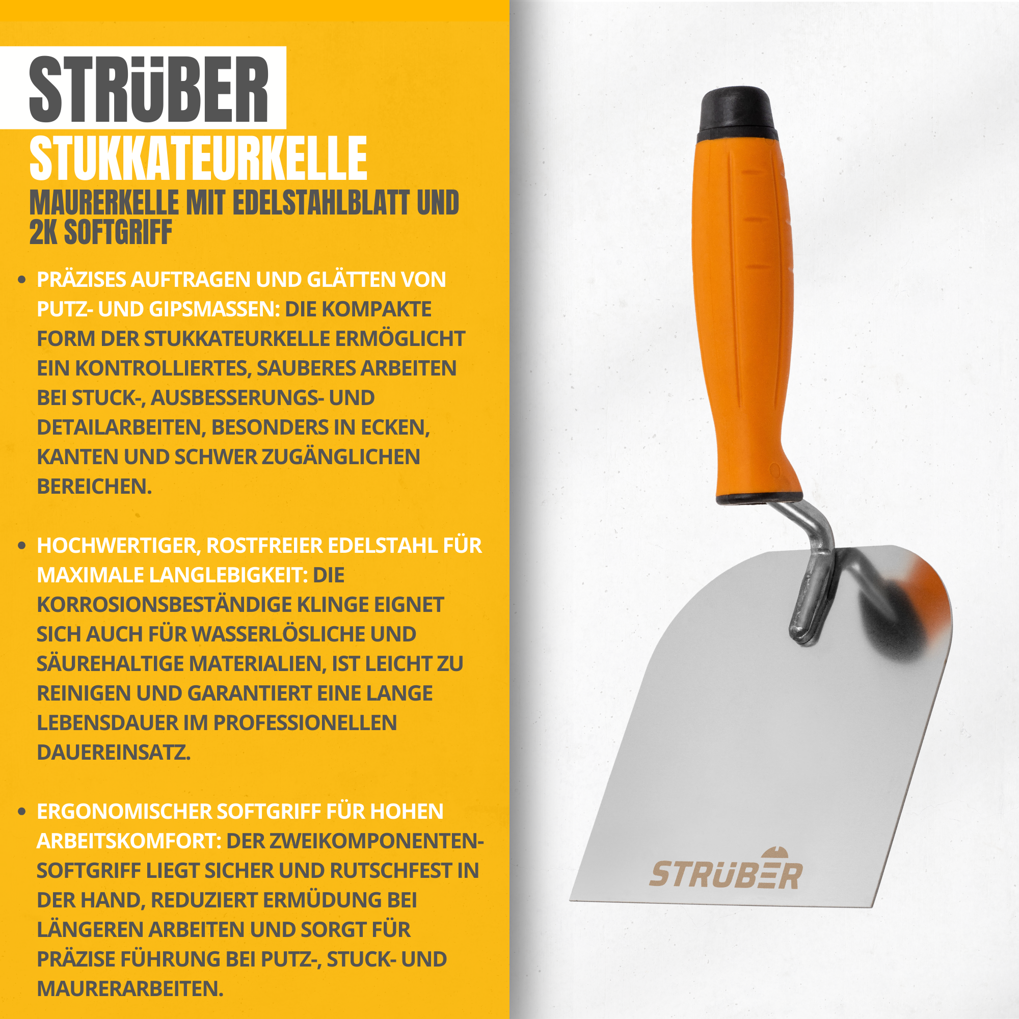 STRÜBER Stukkateurkelle 50 mm - Maurerkelle mit Edelstahlblatt und 2K Softgriff