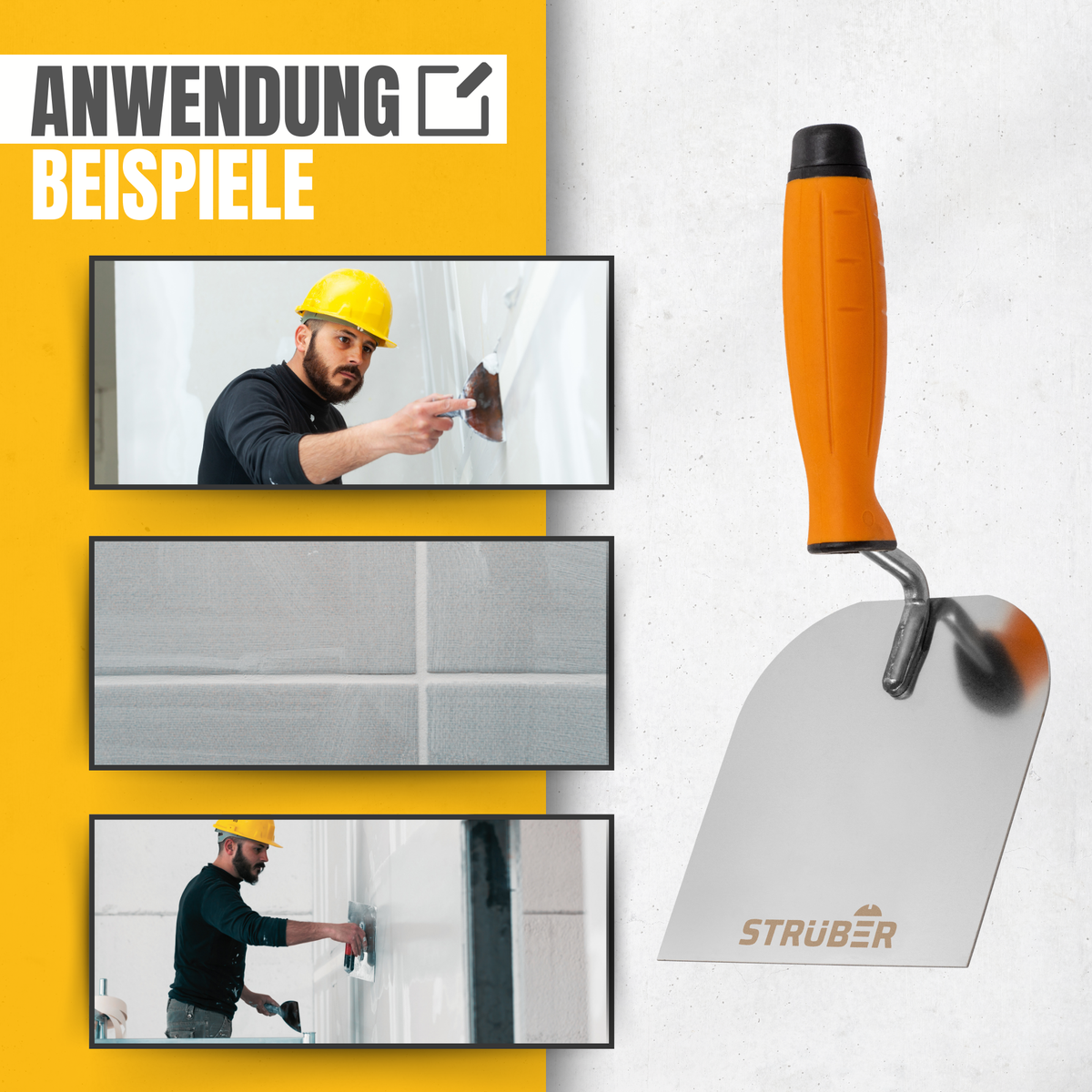STRÜBER Maurerkelle / Stukkateurkelle – Gipserspachtel aus Edelstahl mit Softgriff
