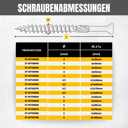 Suchbegriffe: Terrassenschrauben Edelstahl, Holzschrauben Terrasse, Terrassenbau Schrauben, Schrauben für Terrassendielen, Profi Terrassenschrauben.