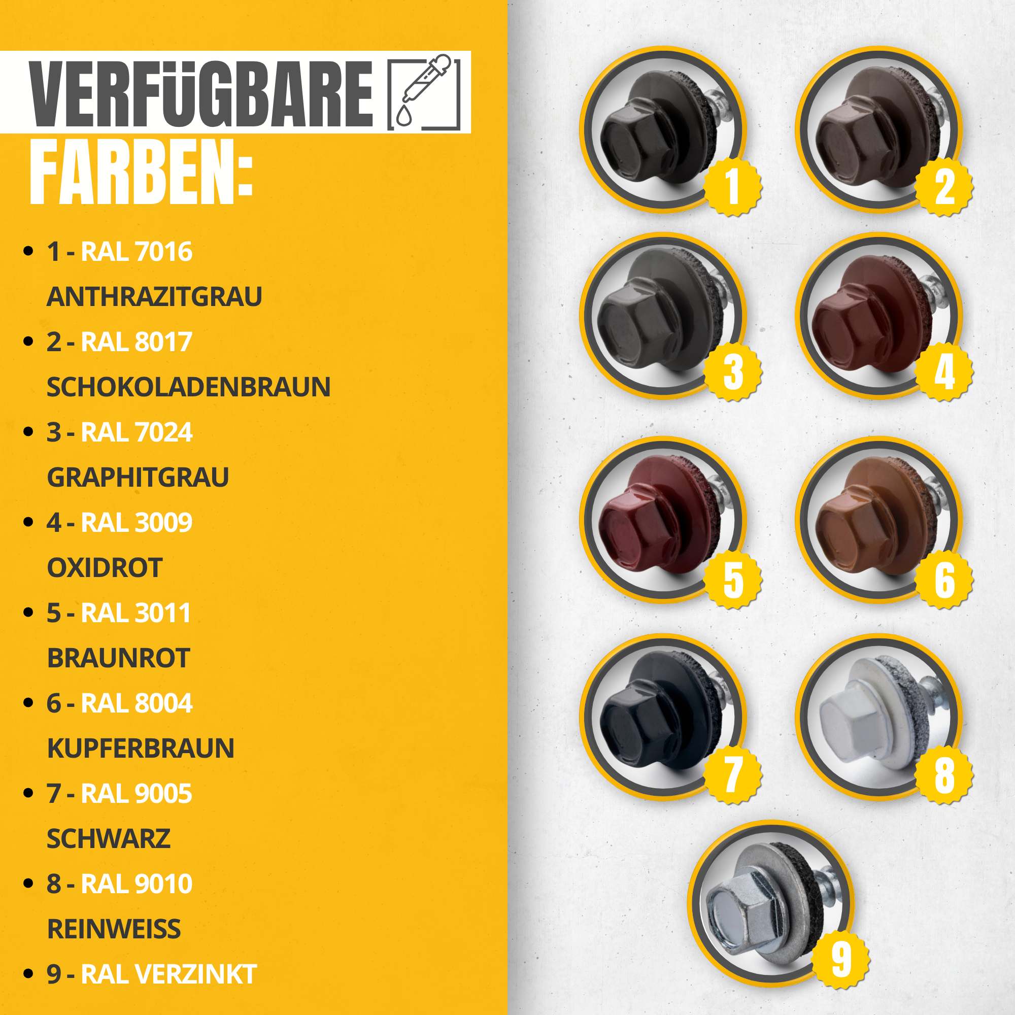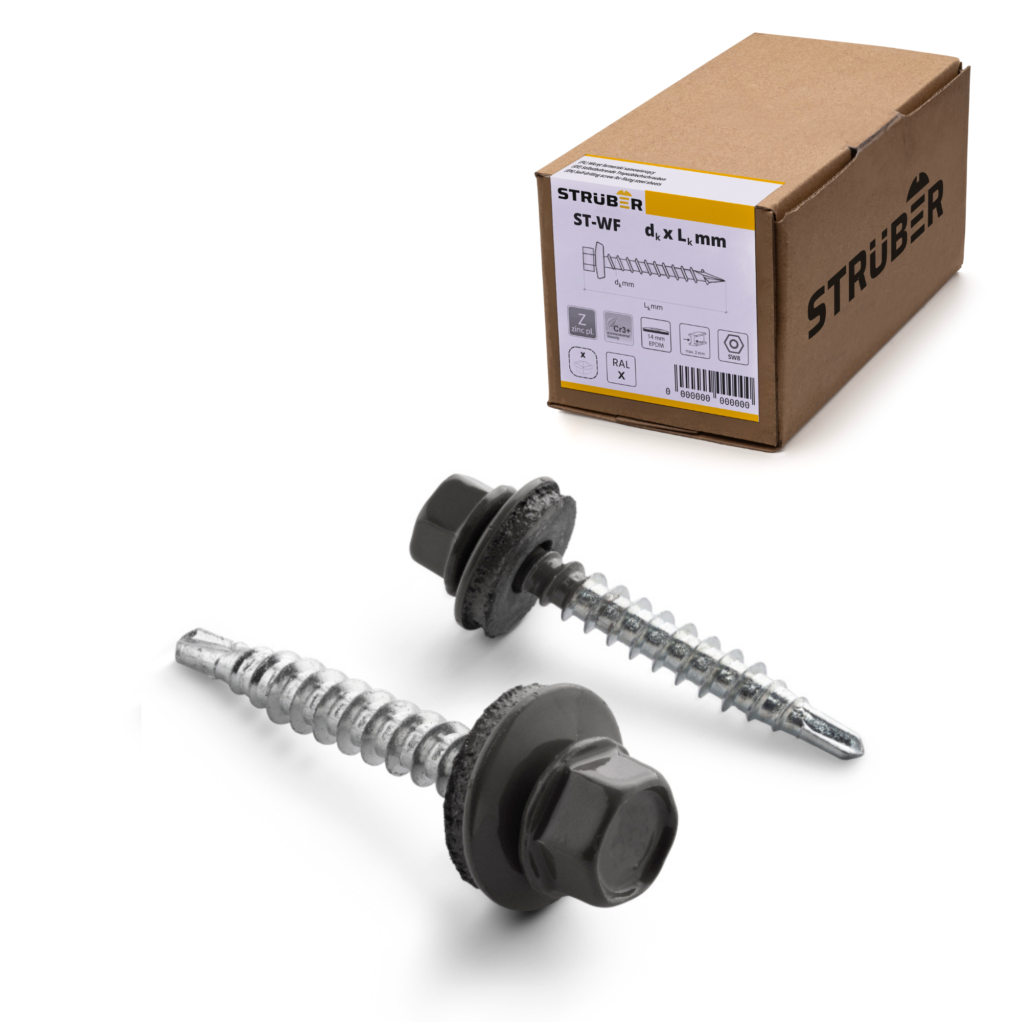 STRÜBER Trapezblechschrauben 4,8x20 mm / 250 Stk. / RAL 7024 – Graphitgrau - Selbstbohrende Bohrschrauben mit Dichtscheibe
